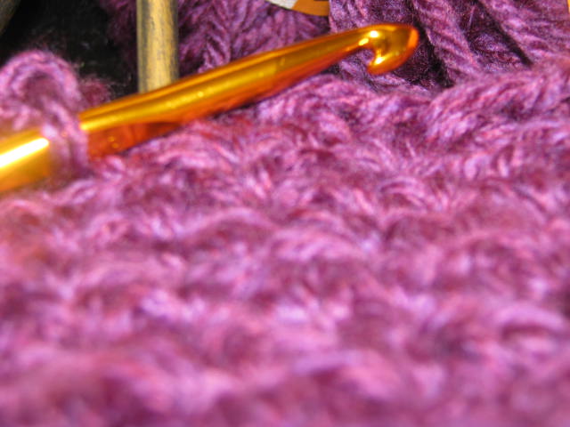 This is eventually going to become a scarf. Pattern description will come when I complete the project. Right now I just can’t get over the fact that I’m a hooker in training!!!!!