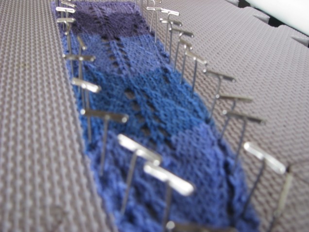 Fast forward about 18 months later.  I was involved in a swap that required a handmade gift.  I was sending my giftee 2 books and thought a bookmark could be a quick, easy gift.  I searched patterns and the best looking ones in my opinion were all lace.   The one I loved the most was not only lace, but it was all charted (no written instructions).  Err … whatchutalkinbout Willis?  I’ve only ever knitted using written instructions.  😯   Added to that, even if you’ve never done lace, every knitter knows that the beauty of lace is in the blocking.  Post blocking the patterns really shine, but errr … I’d never blocked anything before.  But hey … I’m crazy like that, so I decided on the yarn then it was all guns blazing.