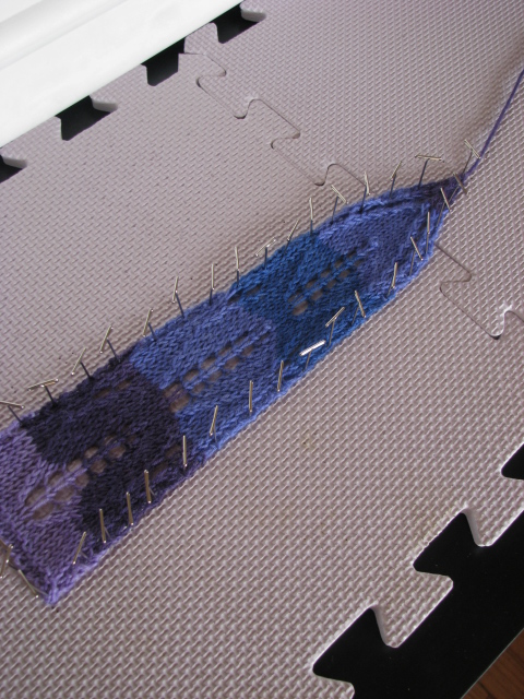 • Pattern Modifications: None technically, except I knit the project on the wrong sized needles (5 instead of 3) so it came out longer than the designer’s sample.  Next time, I’ll do it my way but only do one repeat then the ending chart to shorten it up a bit.