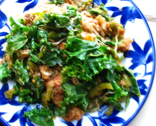 - Add noodles and stir into kale and sausage bits until fully mixed together. (Not too long since you don’t want the noodles to become to rubbery)