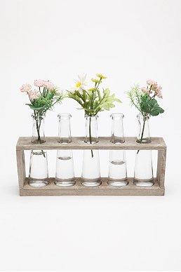 The area for dining is really small. I have a large fruit platter on the table that can’t go anywhere else (no kitchen counter-space; that’s another story) but I’ve always wanted to have fresh flowers on the table. Since there’s no space for that, I’ll be using the wall. The nerd in me loves this chemistry inspired set of flower holders.
