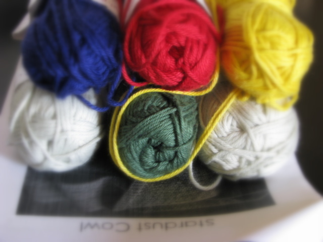 Airy CowlI’ve also struck up a “thing” with another project aka “chick on the side” — the Stardust Cowl from designer Amanda Reed.  I totally missed my blogger-versary and totally did not post my goals for the next crafting year.  I’m finding that my inner crafty diva is pushing me to confront techniques and projects I love but were afraid to touch.  I think she’s getting ready to really bust out for 2013 / 2014 and I’m just being dragged along for the ride.  The Stardust Cowl speaks to all that.  It’ll be my first stranded project, done in the round and although the designer used variegated yarn to create the design, I’m using four contrast colours and aim to carry the colours up the side instead of cutting and weaving in for the colour changes.  I have to see how that works; if it turns out to be too bulky, I’ll have to cut then weave multiple ends in.