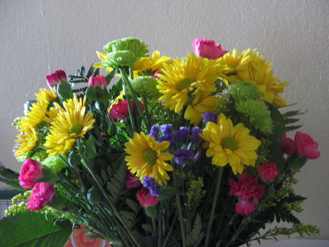 - A floral surprise and a wonderful note from my homie, confidant, friend, little sister Dominique. She sent this to my job as a surprise “pick me up” in response to my feeling so crappy from the flu. The blooms have opened even more today and it’s a wonderful reminder of caring.