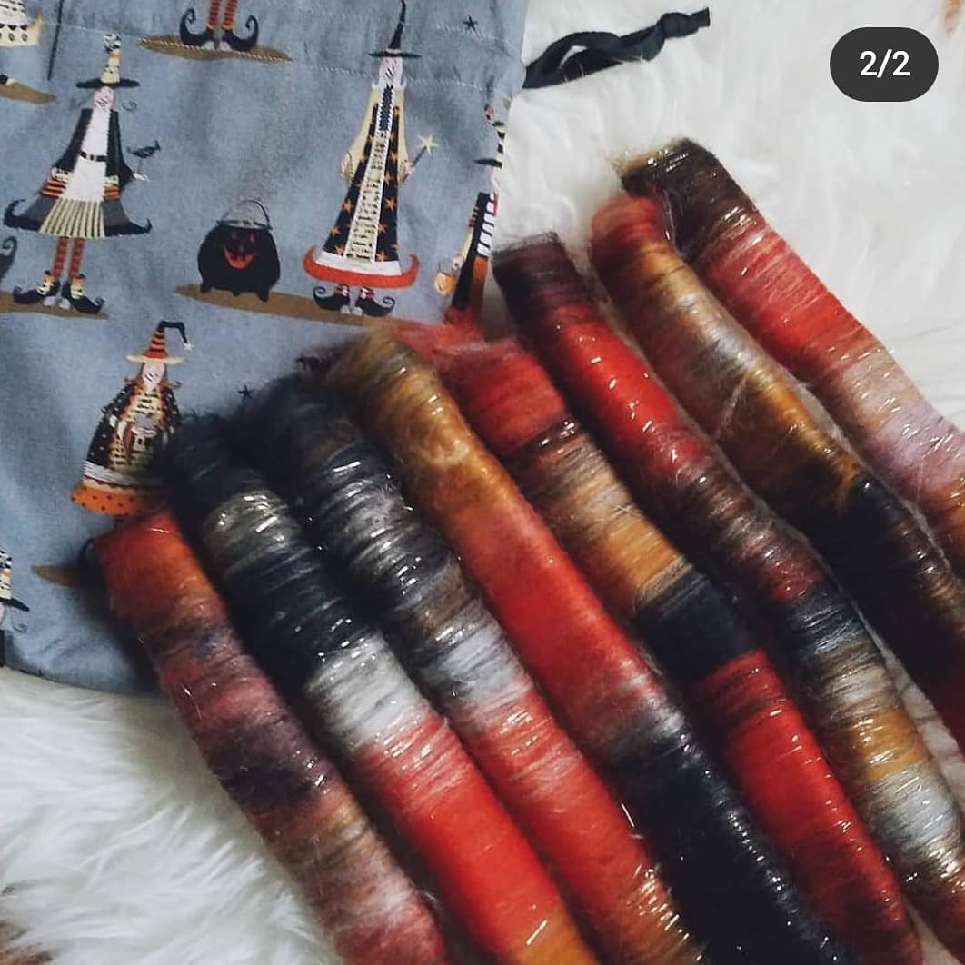 I’m very happy with the outcome and looking forward to playing with rolags and painting with fiber some more! Next up is to find a Fall spooky colorwork project to really make this yarn shine.