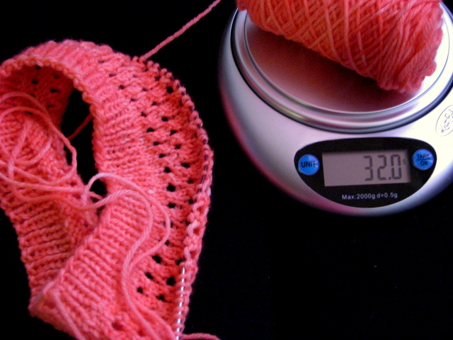 I started with 50 grams of yarn which equals 123 yds.  I’ve used 18 grams which totals 3 inches of knitted work.  Stay with me!  I see your eyes glazing over already!!!! LOLOL!  😛  Now for the fun part, let’s do the equations: