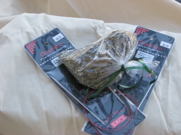 Other than that, I’m determined not to let lace be the death of me so I got two ChiaoGoo lace circulars in sizes 2 & 3. I also picked up some “Moth Away” herbs to keep those pesky critters out of my stash.